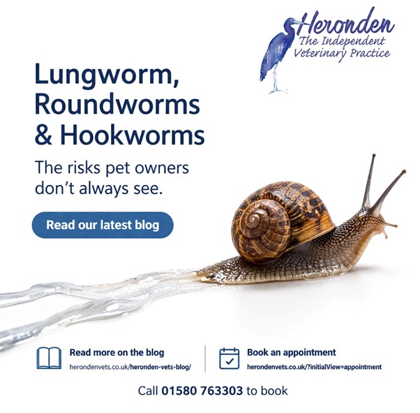 At Heronden Vets, lungworm is something we take seriously. Our own preventive care advice warns that it can be “easily picked up by your dog in the garden” and may carry a high mortality risk if not recognised in time.